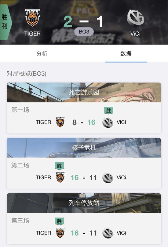 TIGER对阵VG 图二Nuke,TIGER拿下前四局后VG开始反击,半场比分来到TIGER8:7VG。下半场防守方的VG面对TIGER井然有序的战术有些难以招架,TIGER最终以16:11战胜VG赢下图二。